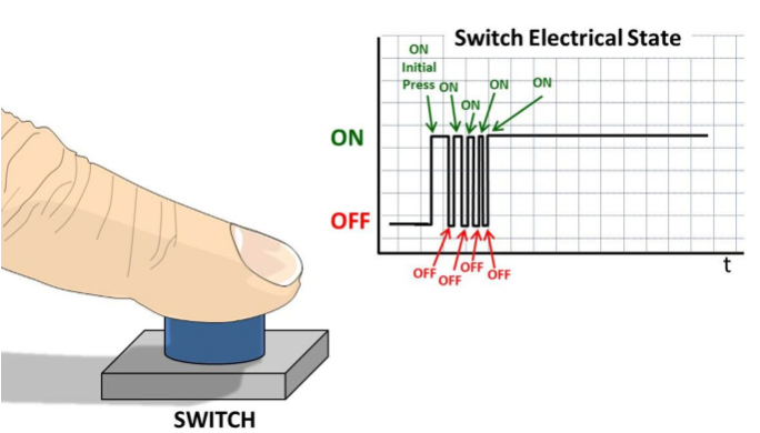 전기 회로에서 나온 용어로, 스위치를 눌렀을 때 짧은 시간 간격으로 on off가 반복되는 bouncing 현상을 없애는 행위