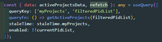 queryFn: ()=>getActiveProjects(filteredPidList),