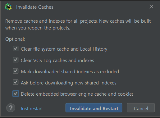 2. Invaildate Chces and Restart (캐시삭제 이런 느낌)
