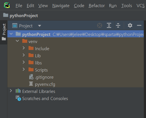 프로젝트 생성 시 경로\venv 폴더로 경로는 정상 작성되어 있음에도