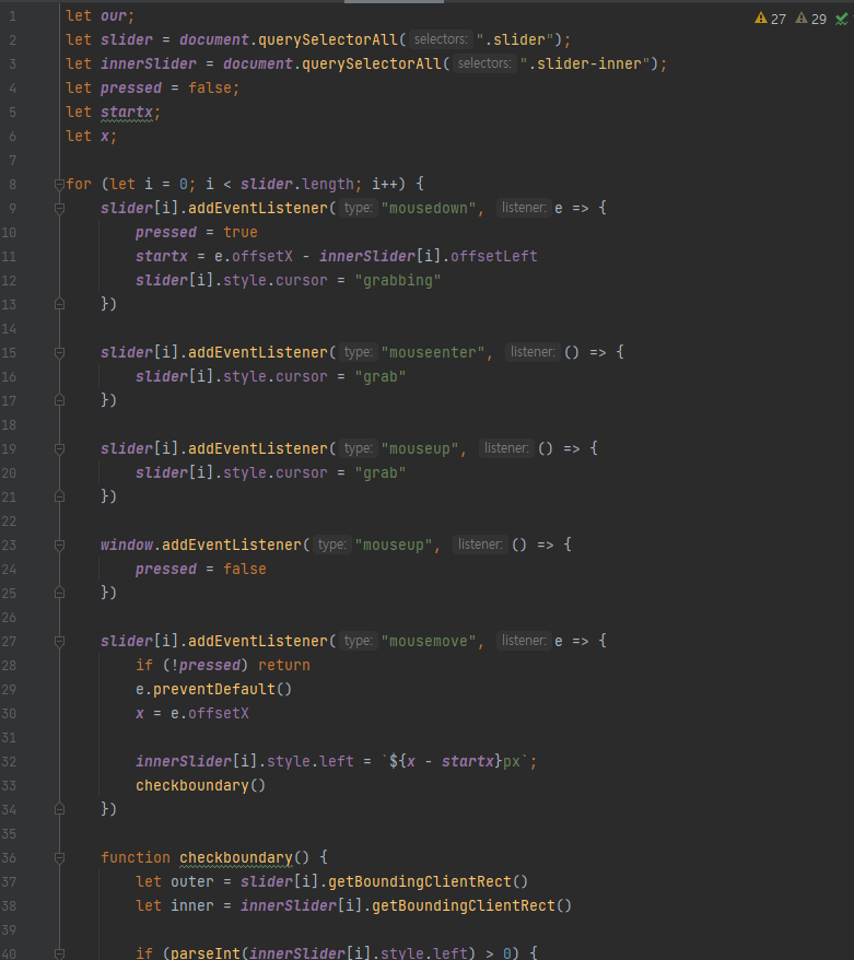 slider, innerslider 변수 전체에 [i]를 붙여서 for문을 돌리니 전체 탭 슬라이더에서 돌아갔다.