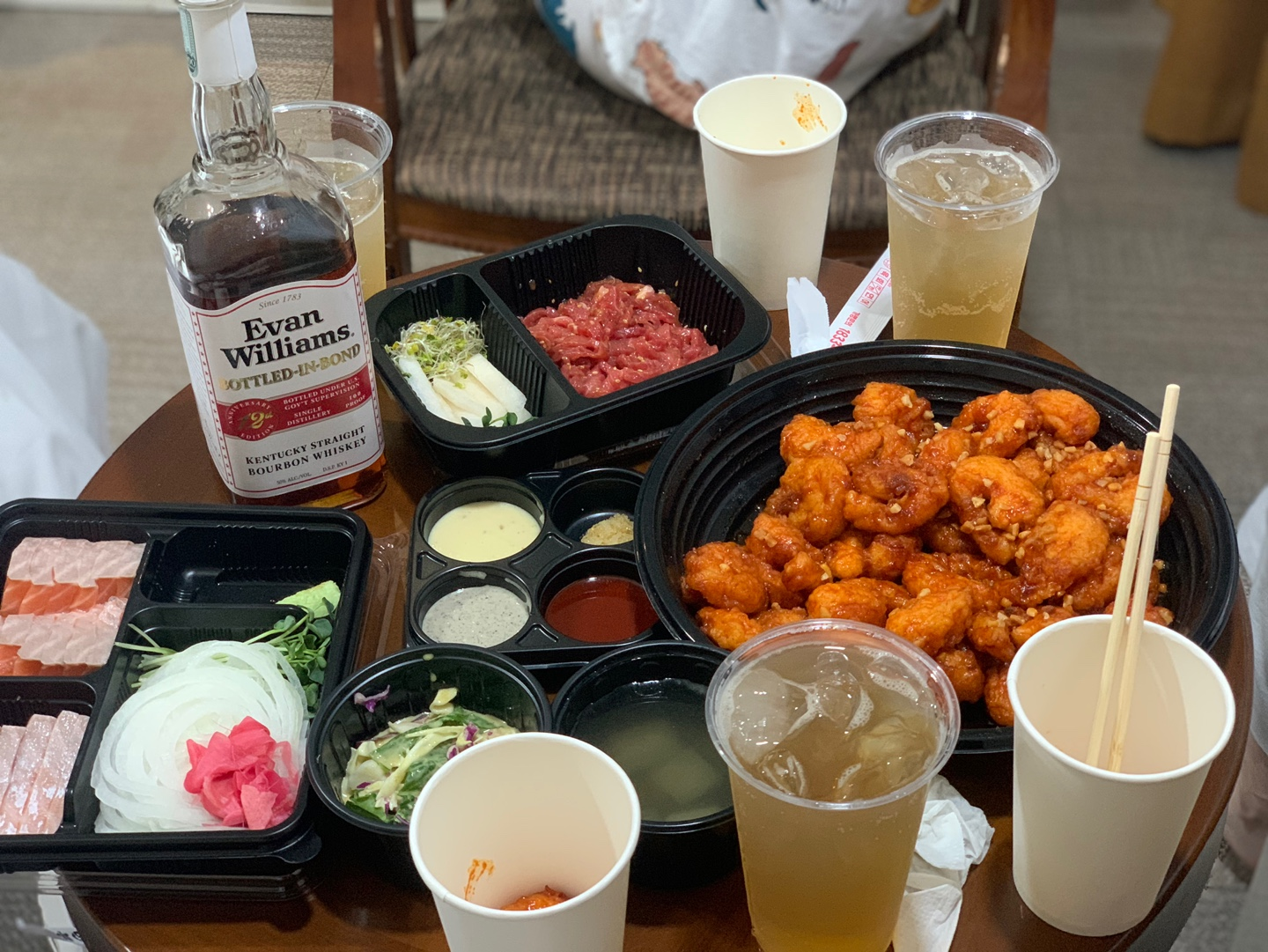 도착하자마자 얼음사고 씻고 저녁 겸 야식 겸 안주를 먹고 새벽 4시가 넘어서 잤다...
