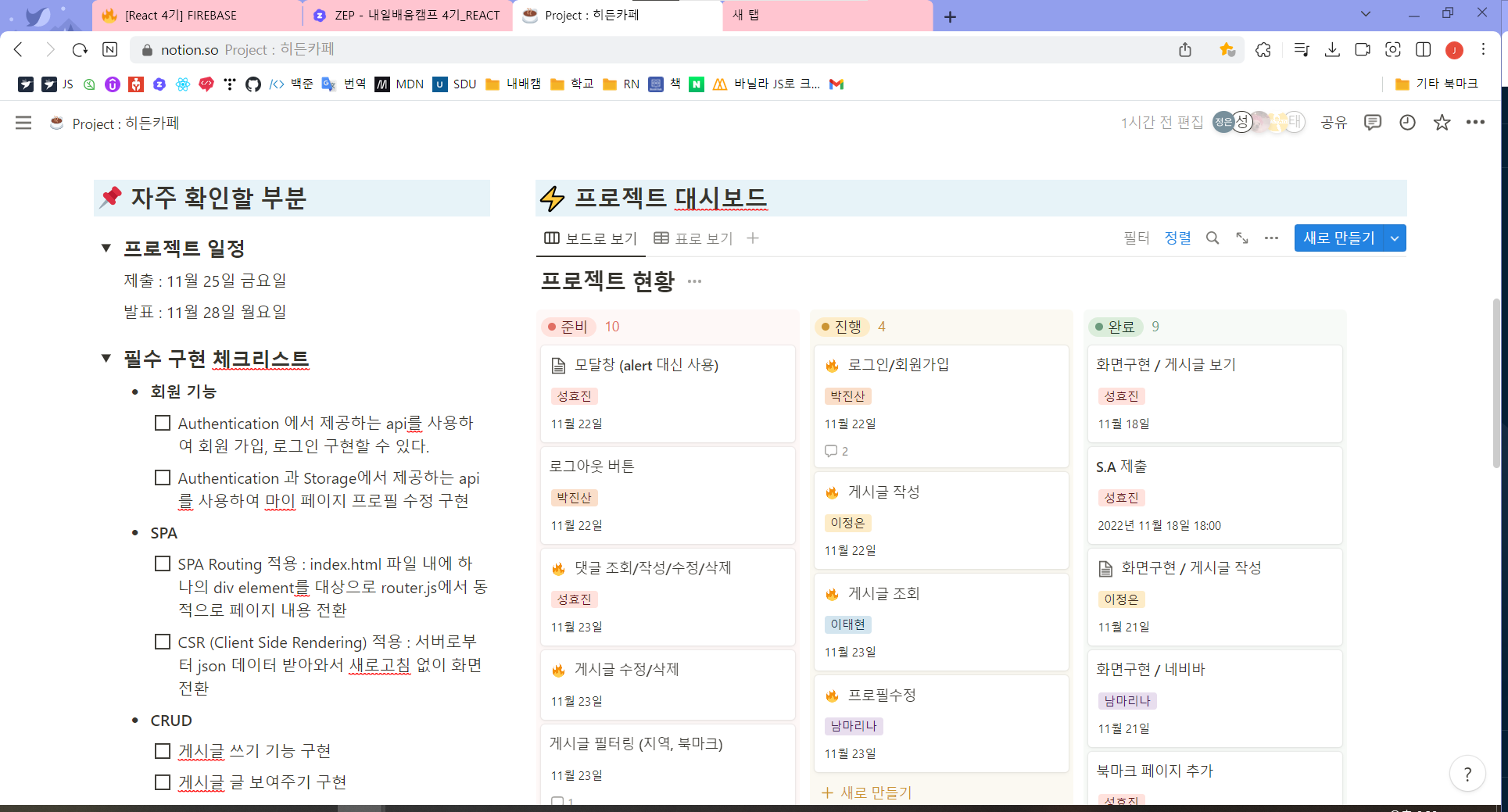 나는 게시글 작성 부분을 맡아 진행 중이다. 내일까지는 무사히 완료되길..