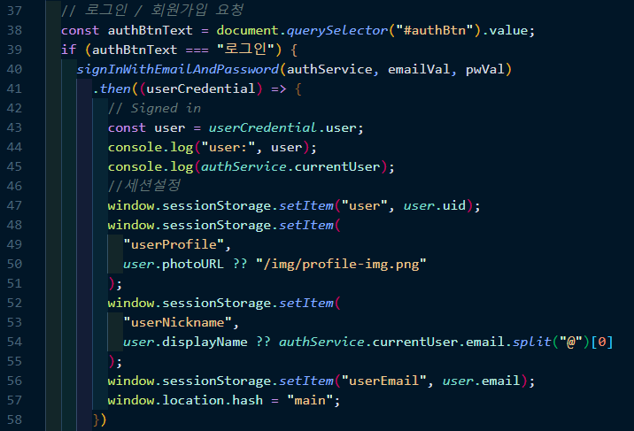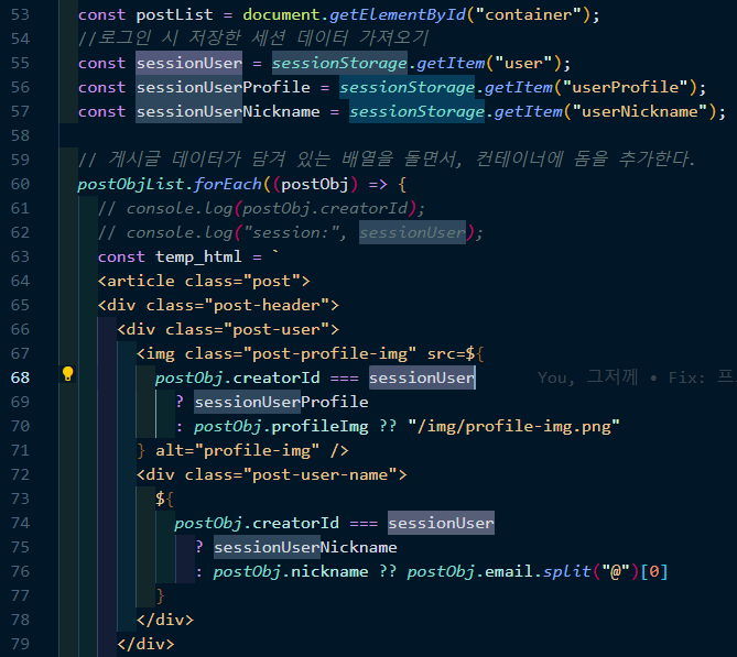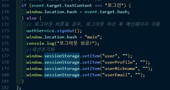 그리고 세션이 필요한 곳에서 getItem을 통해 원하는 정보를 가져온다.
