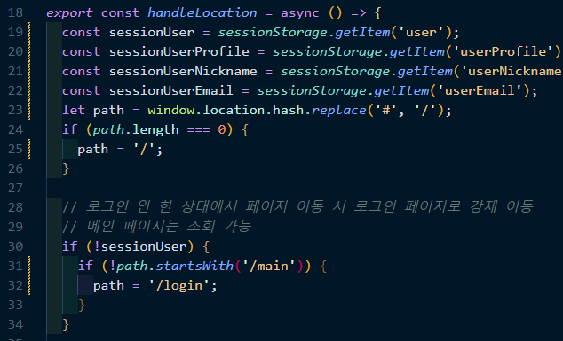 로그인 중임에도 불구하고 메인페이지가 아닌 다른페이지에서 새로고침을 하면 다시 로그인 창이 떴기 때문이다.