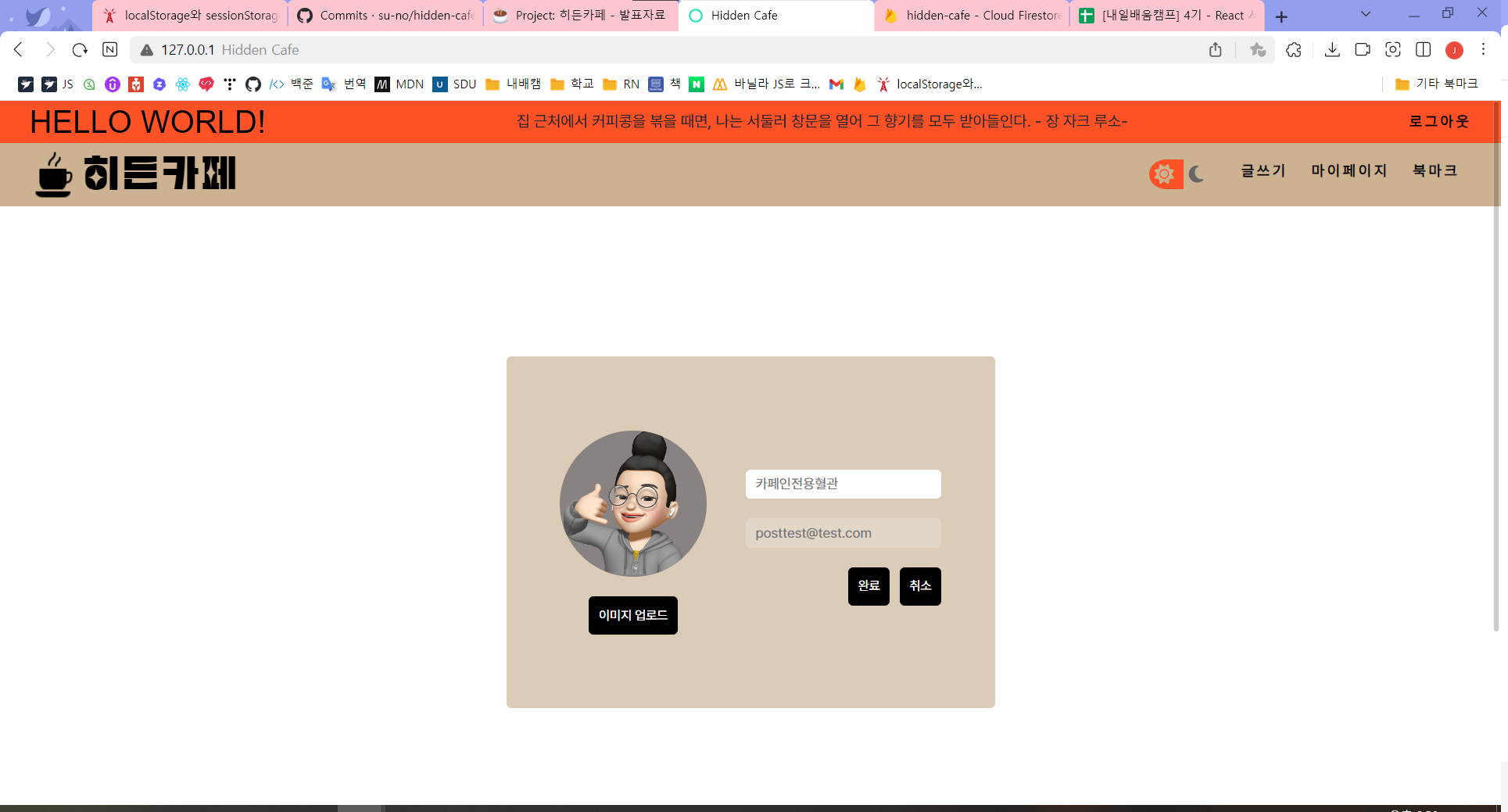 추가로 main 페이지와 글쓰기 페이지에 프로필, 닉네임이 보일 수 있도록 했다. 회원가입 직후 nickname 데이터가 없을 경우에는 email 데이터로 대체하도록 했다.