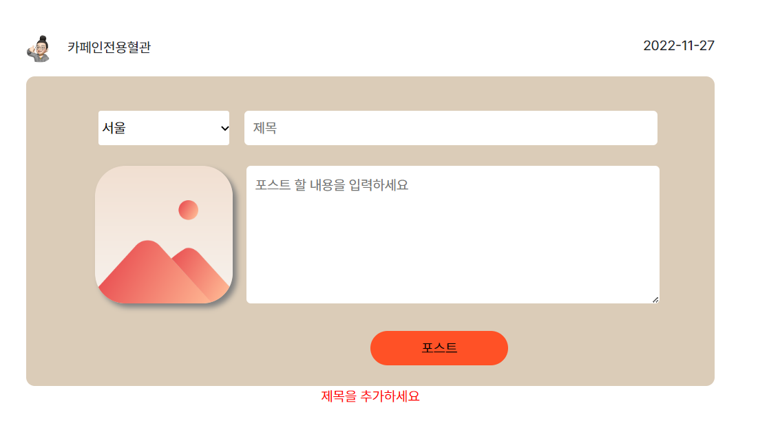 글쓰기 페이지에 사진, 제목, 내용 필수 기능 추가
