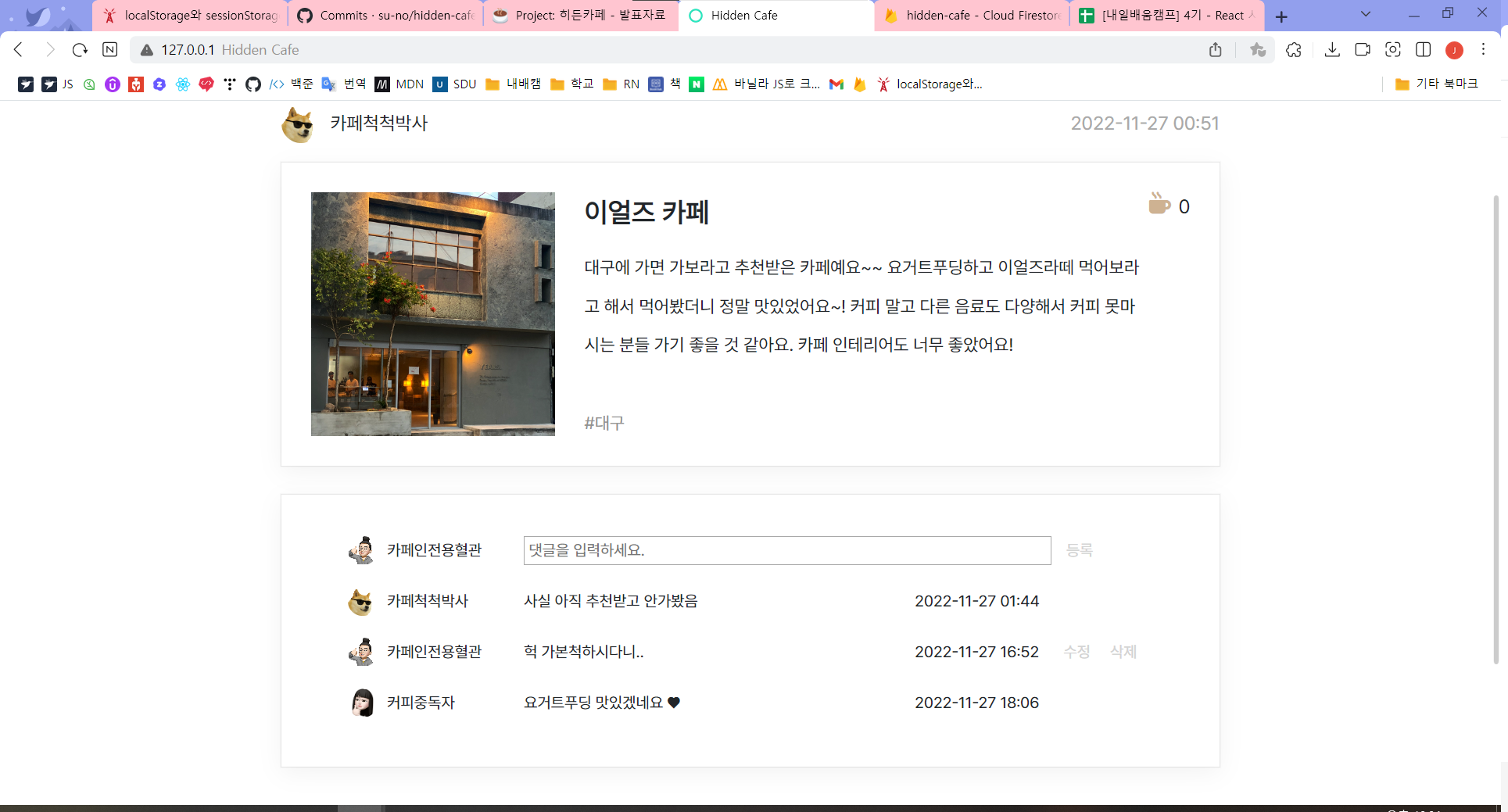 그리고 진산님의 북마크 기능에서 글 삭제 기능처럼 문서 id가 필요한 부분이 필요하여 도움을 드릴 수 있었다.
