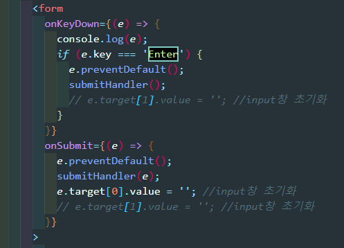 e.target[0].value = ''; //input창 초기화
