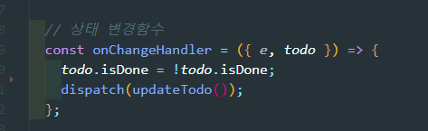 2) 체크버튼 클릭 시 상태 변경 : 완료↔진행중, dispatch를 통해 isDone 상태 변경내용 전달