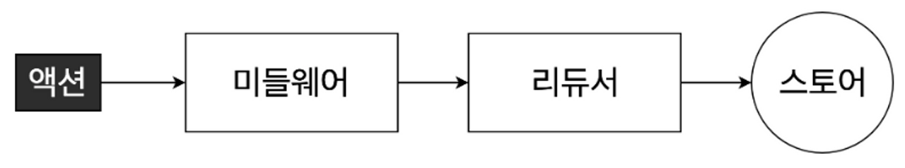 만약 counter 프로그램에서 더하기 버튼을 클릭했을 때 바로 +1를 더하지 않고 3초를 기다렸다가, +1이 되도록 구현하려면 미들웨어를 사용하지 않고서는 구현할 수 없다. 왜냐하면 dispatch가 되자마자 바로 action이 리듀서로 달려가서 새로운 state를 반환해버리기 때문이죠. 즉 여기서 “3초를 기다리는 작업" 이 작업을 미들웨어가 해주는 것 입니다.