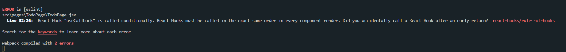Error: React Hook "useCallback" is called conditionally. React Hooks must be called in the exact same order in every component r