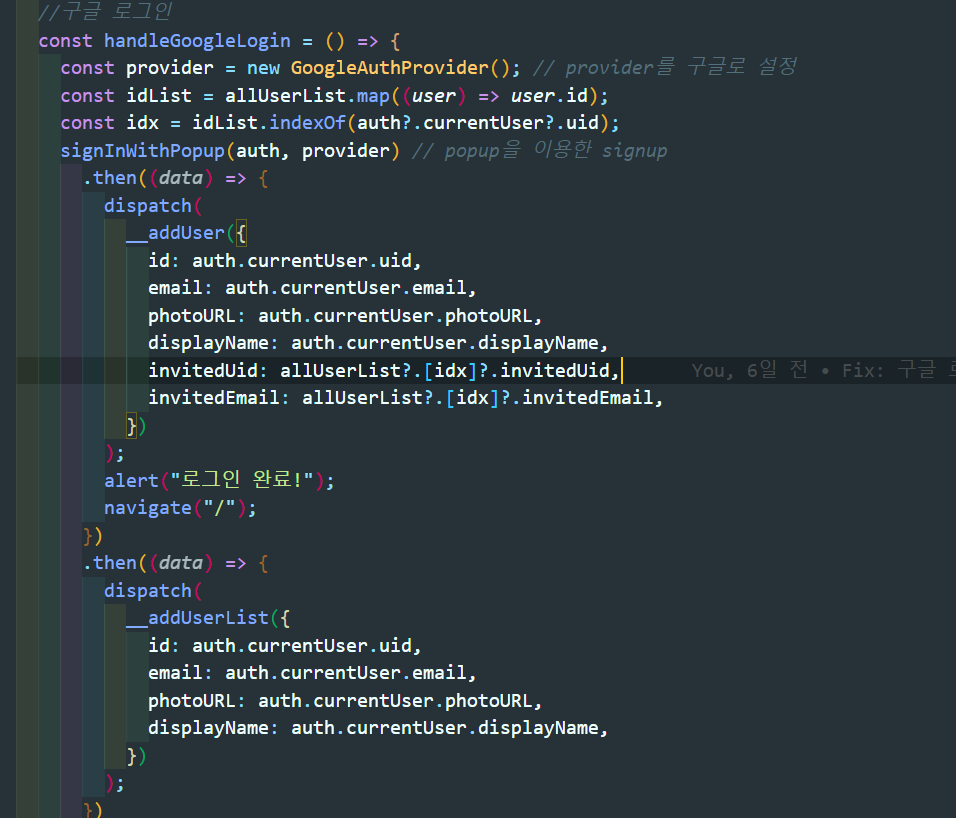 그래서 파이어베이스를 활용하여 이메일 로그인, 구글 로그인 기능을 구현하였고 thunk과 redux를 이용해 데이터를dispatch하여 json-server에 저장되도록 하였다.