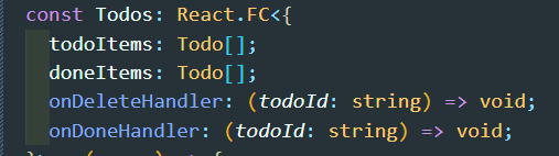 1) 매개변수: Todos를 사용하는 App.tsx에서 전달해주는 변수 및 함수들