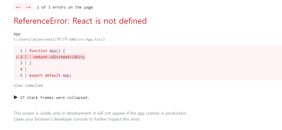 처음에 import React from 'react'를 했더니 해결이 됐다.